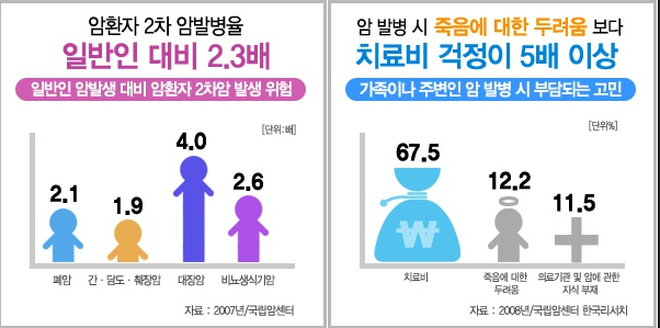 ¾ÏÄ¡·á´Â Àç¹ß°ú ÀüÀ̶ó´Â Ư¼º¶§¹®¿¡ '5³â»ýÁ¸À²'À̶ó´Â ±âÁØÀ» »ç¿ëÇϴµ¥, 2012³â Åë°è¿¡ µû¸£¸é 2001-2005³â »ýÁ¸À²ÀÌ 53.7%¿¡¼ 2006-2010³â¿¡´Â 64.1%·Î ¸Å¿ì ³ô¾Æ졋½À´Ï´Ù.