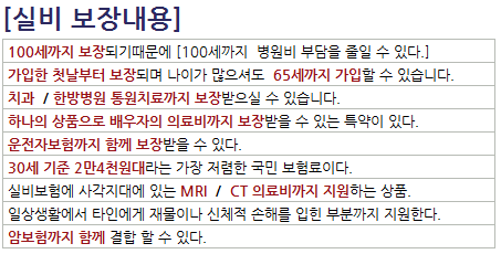 °¡ÀԽà À¯ÀÇ»çÇ×Àº °¢Á¾ º´·ÂÀ¸·Î Àç°¡ÀÔÀÌ ¾ÈµÉ ¼ö ÀÖÀ¸¹Ç·Î Æò»ýº¸Àå°¡´ÉÇÑ 100¼¼¸¸±â·Î °¡ÀÔÇϱâ ÇöÀç ÀÇ·á½Çºñ´Â 1³â°»½Å»óǰÀ̸ç, °»½Å½Ã º¸Çè·á º¯µ¿ ÀÖ½¿À» ÀÎÁöÇϰ¡ °¡ÀÔÇϱâ ÀÇ·á½Çºñ¿Ü ¸ðµç ´ãº¸´Â µÇµµ·ÏÀÌ¸é ºñ°»½ÅÇüÀ¸·Î °¡ÀÔÇϱâ