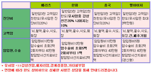 *** Á¤¾×º¸»ó »ý¸íº¸Çè»ç žƺ¸Çè µ¿¾ç»ý¸í ²Þ³ª¹«ÀÚ³à»ç¶ûº¸Çè, ½ÅÇÑ»ý¸í ¾ÆÀÌ»ç¶ûºò »ý¸íº¸Çè»ç´Â ¾ÏÁø´Üºñ 5õ¸¸¿øÀ¸·Î º¸ÀåÇѵµ ³ôÀ¸¸ç, ±×¿Ü ´Ù¾çÇÑ ¼ö¼úºñ, ÀÔ¿øºñ Á¤¾×º¸Àå°ú Åë¿øºñ´Â ¾à°ü¿¡ µû¶ó °øÁ¦±Ý¾×¾øÀÌ 1¸¸¿ø Á¤¾×º¸Àå.