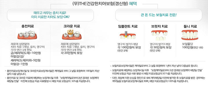 °¢ ȸ»çÀÇ º¸Àå³»¿ëÀº ´ëµ¿¼ÒÀÌÇÑ ÆíÀÌÁö¸¸, °»½Å ¸¸±â½Ã ¸¸±âÁö±Þ±Ý 50¸¸¿øÁö±Þ°ú ±Þ¿©Ç׸ñÀ¸·Î Ä¡°úÅë¿ø½Ã 5õ¿ø Åë¿øºñ°¡ º¸ÀåµÇ´Â ¶óÀ̳ª »ý¸íÀÇ ´õ°Ç°ÇÑ Ä¡¾Æº¸ÇèÀ¸·Î ÃßÃµÇØµå¸³´Ï´Ù. ÀÚ¼¼ÇÑ ³»¿ëÀº ¾Æ·¡ Ç¥¸¦ ÂüÁ¶Çϼż º»ÀÎÇÑÅ× ¸Â´Â º¸ÇèÀ¸·Î ¼±ÅÃÇÏ½Ã¸é µÇ½Ã°Ù½À´Ï´Ù.